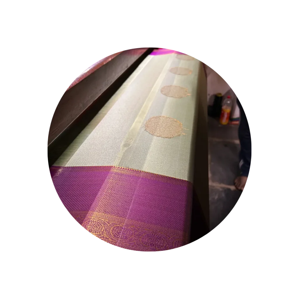 Our vision is to become a globally recognized brand for the finest handloom sarees made in India, celebrating our weavers’ artistry and cultural legacy. We aim to lead in sustainability, innovation, and customer satisfaction, making a meaningful impact on artisans and their communities. We envision empowering women, valuing their skills, and showcasing Indian traditional weaves on a global platform